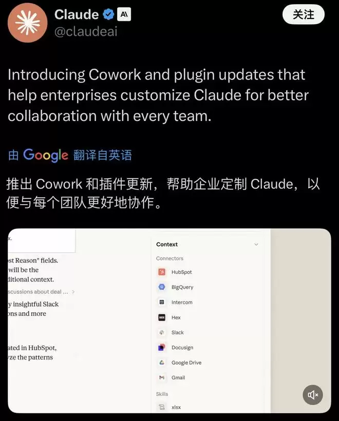 2月24日,引发这轮暴跌的Anthropic开始“救火”,在推出10种新插件的同时,提及这些专业服务插件背后都有专业软件服务商的支持。例如汤森路透与Anthropic等公司合作构建AI法律服务平台,FactSet等合作开发金融服务相关插件,SaaS巨头Salesforce旗下的Slack、网络签名服务公司DocuSign等也参与了合作。