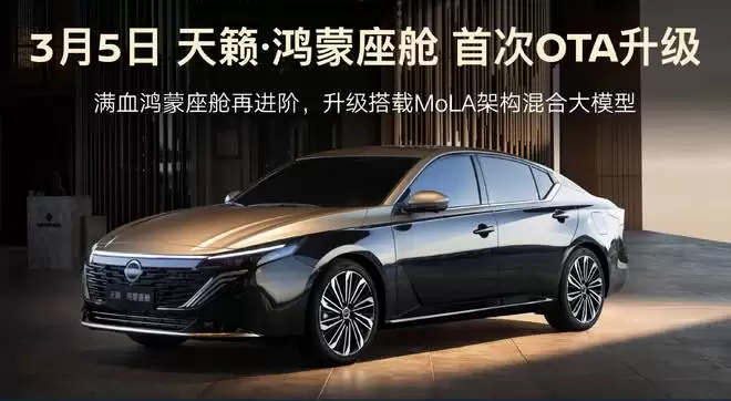 智能化层面,天籁鸿蒙座舱进行了首次 OTA 升级。系统新搭载了基于 MOLA 架构的混合大模型,重点优化了人车交互的自然度。