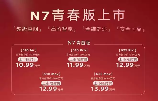 日产 N7 只做了价格调整,虽然此次推出的车型名为「青春版」,实则车辆配置几乎未变,只是价格在原来基础上下调了 1 万元。