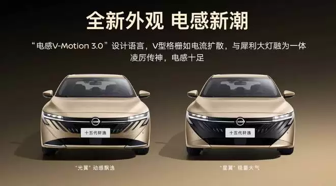 第十五代轩逸采用了全新前脸造型,供「双前脸」设计供消费者选择。