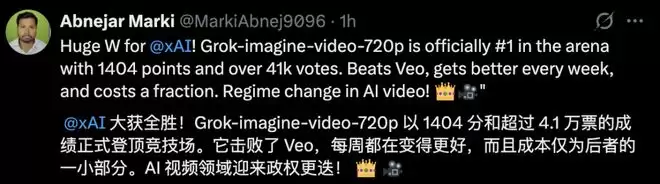 从一些基准测试上来看,Grok-imagine-video-720p不仅击败了谷歌强大的Veo模型,而且生成成本也更低。