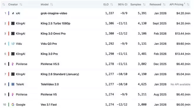 Grok-image-video在风格、主题和格式一致性上得分高,它的API定价约$4.20/分钟,低于谷歌Veo 3.1 Fast等竞品。