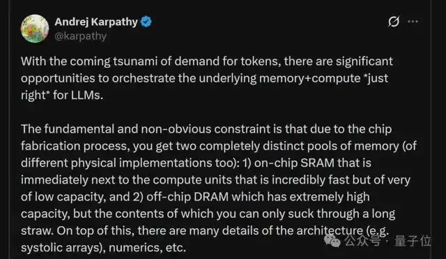 这正是卡帕西所说的“设计最优物理基板,编排内存与计算,以求最快、最便宜地获取token”的现实注脚。