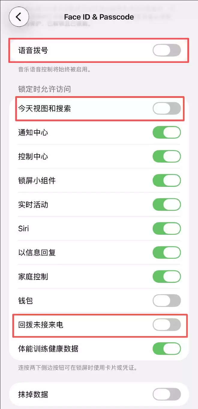 专家还补充说,要是还是担心误拨,可以去设置里,找到面容ID与密码,把「语音拨号」、「今天视图和搜索」、「回拨未接来电」这三个选项关掉。