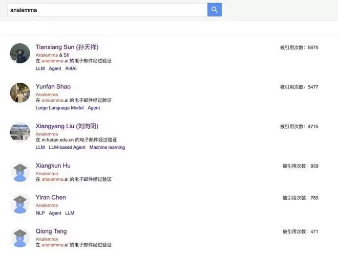 更加让人惊讶的是,这一团队居然如此年轻。据 Google Scholar 搜索结果显示,日行迹研究团队成员平均年龄不足 30 岁,其中多人为 MOSS 和 InternLM 大模型的核心贡献者。