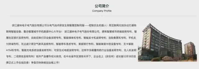 据建林电气的正式介绍,其是一家以电气技术研发生物智慧控制伺服---控制仿生机器人,用互联网无线协议打通物联网智能设备、整合智慧城市手机数据中心大平台的公司。