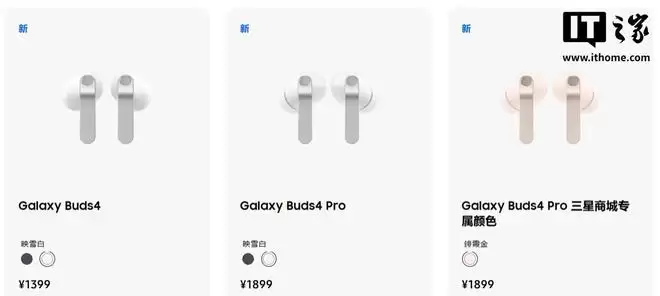 三星一同发布了 Galaxy Buds4 和 Galaxy Buds4 Pro 无线耳机,售价分别为 1399 元和 1899 元。