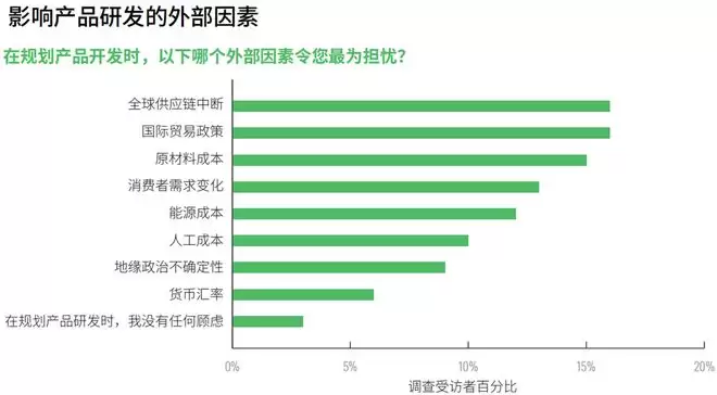 全球供应链中断(16%)与国际贸易政策变动(16%)是备受关注的干扰因素。受访企业普遍认为汇率波动幅度可控,不会对自身贸易平衡造成实质性冲击。