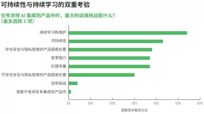 在运营层面,持续学习与维护(54%)以及可持续性(43%)等功能的重要性日益凸显,这与AI产品在功耗及全生命周期管理方面的要求密切相关。