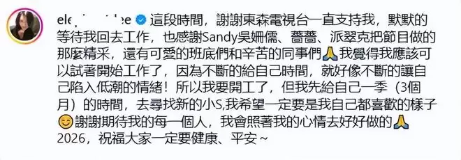 其实早在此前,小S就对自己的复出做了预告,媒体也形容她将在年后复工。