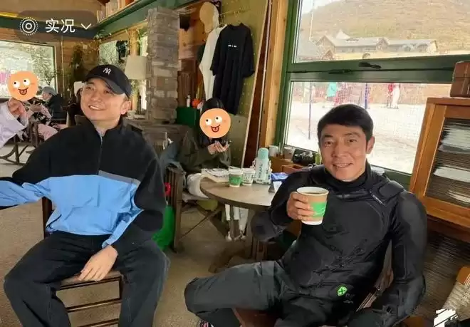 滑累了,俩人还去旁边的咖啡厅小憩。撒贝宁一身黑色专业护具,端着热咖啡,胡子拉碴的,没了镜头前的精致,多了几分随性自在。小尼穿着蓝黑冲锋衣,侧着身子凑向撒贝宁,一脸认真地听着,时不时还笑一下。