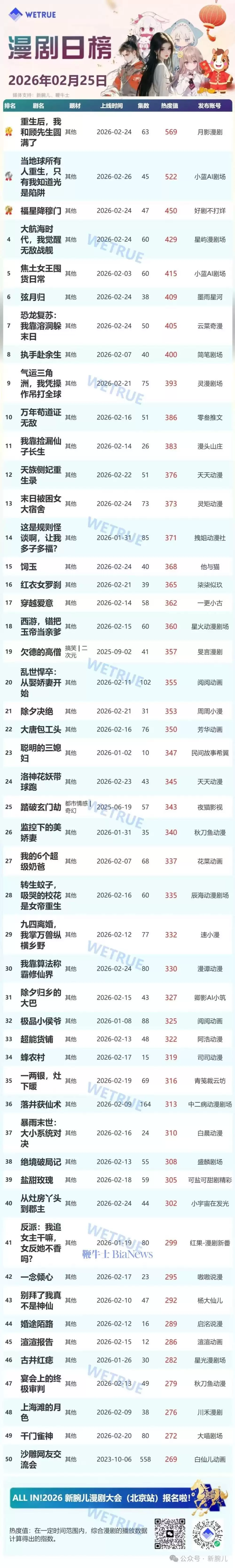 25日短剧日榜:《重生后我和顾先生圆满了》漫画第一