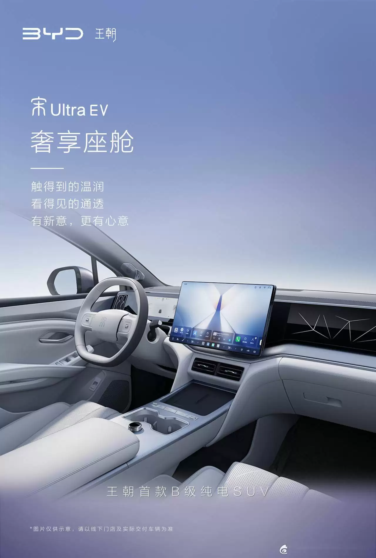 比亚迪王朝系列即将迎来一款全新力作——宋 Ultra EV,这款B级纯电SUV近日因内饰细节曝光而备受关注。王朝网销售事业部总经理路天透露,新车以“松驰有度,悦享从容”为设计理念,主打年轻化与舒适性相结合的驾乘体验。