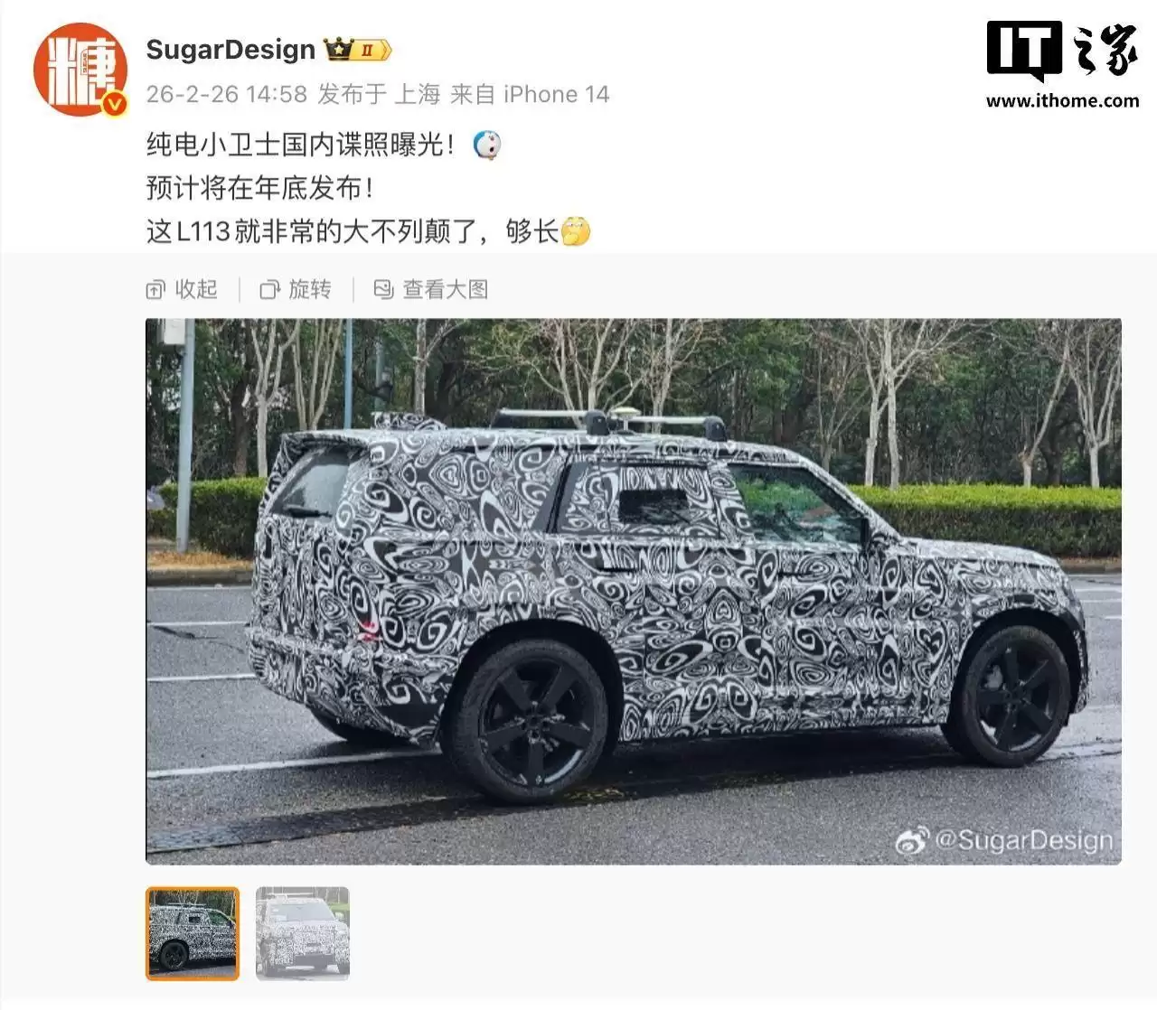 路虎“小卫士”纯电版国内实车曝光,预计年底发布