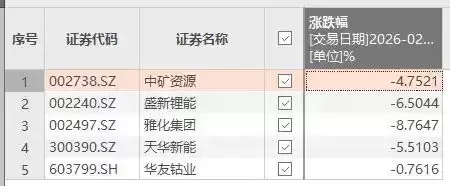 2月26日5家涉矿企业股价涨跌幅。央广网