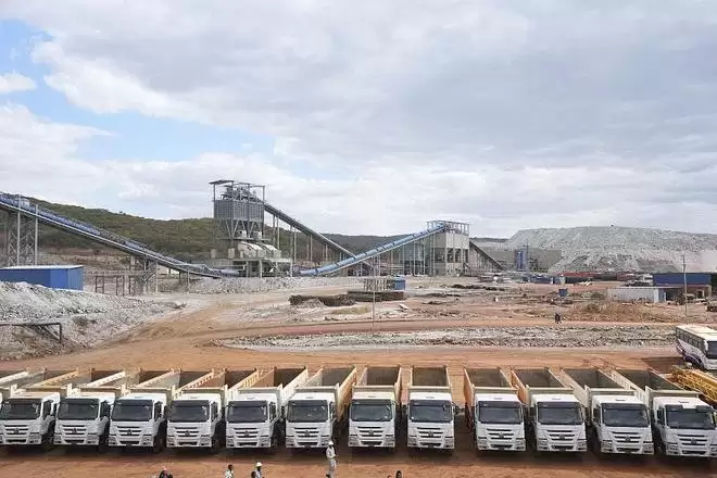 当地时间2024年7月5日,津巴布韦格罗蒙兹,在首都哈拉雷东南约80公里,卡车和机械在津巴布韦前景锂矿加工厂的场地上。CFP