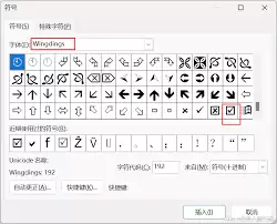 5. 这时会弹出一个“符号”对话框。在“字体”下拉菜单中,选择“Wingdings 2”这种字体。