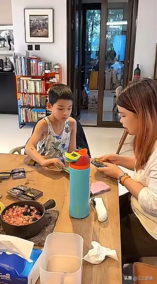 梅婷家里有非常多艺术画作,还有很多书架,室内装修简约干净,色彩搭配很舒服。