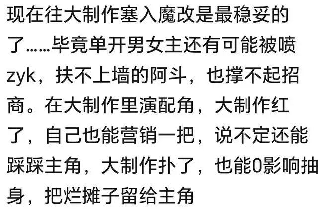 就感觉,全世界的资源咖们是不是突然都转换思路,决定走掀桌路线了?毕竟自己开剧当主角吧,扛扑街风险太大,还得被观众审判;但是如果能混进大IP剧组,给当红花生当配角,然后咔咔一通加戏,把桌掀了,那不就“剑走偏锋”直接上桌吃饭了吗?
