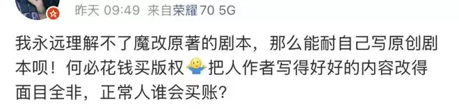 说实话,这已经很让人无语了,捧人捧到不知天地为何物,既然你拿着跟原著毫无关系的剧本,那你花那钱买版权干啥?