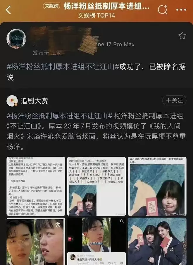 特意请来曾公开玩过杨洋黑梗的网红“厚本”进组参演,引发粉丝强烈抵制后,才紧急删除戏份并宣布其退出又是何意味?