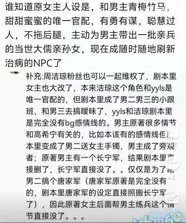 点进去一看,核心矛盾大差不差,都是在抵制配角加戏。