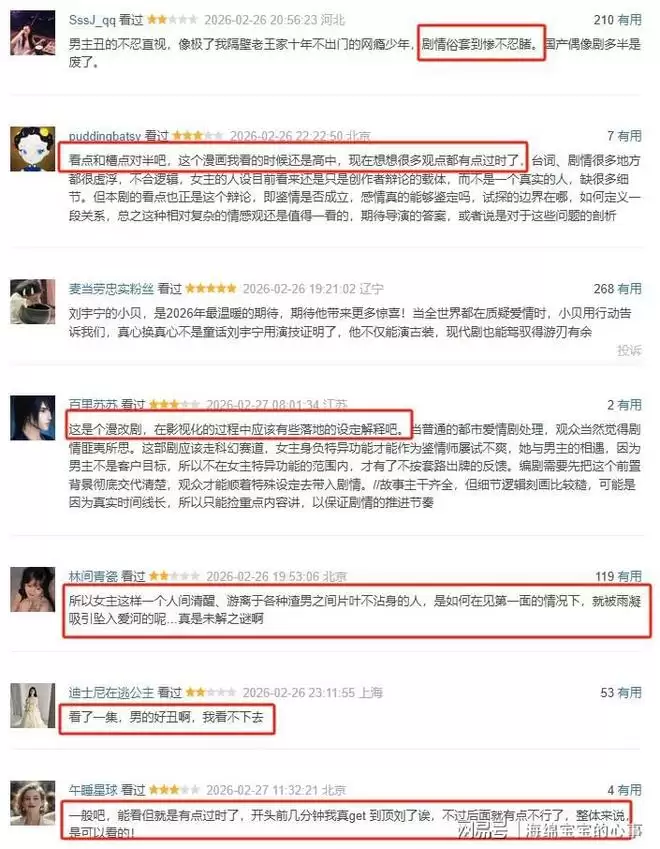 ▶总结:作为一部漫改剧,这部剧无论是故事背景还是人设都不太落地,处处透露着违和感,剧情和人设也给人一种三观不正常的感觉,主演演技虽然还行,但是CP感太差,整体品质不太吸引人!