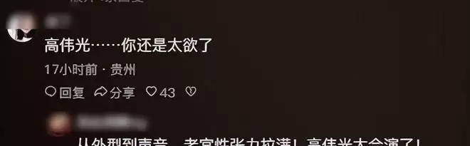 更直观的数据是:高伟光单场戏剪辑短视频播放量达890万次,点赞超112万;而刘宇宁同集核心片段播放量仅为203万,互动数据不足前者的五分之一。