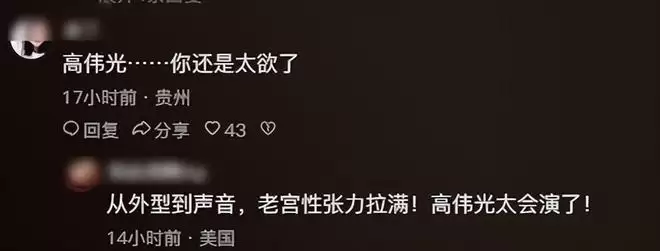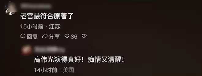 明明高伟光连男二都算不上,充其量只是个助阵的嘉宾,可是评论中却全是在说刘宇宁演得太僵,夸高伟光演得好的评论。