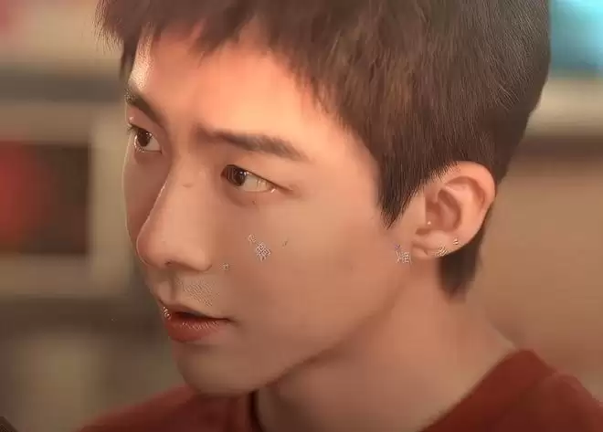 和女主在店里对话的时候,嘴上笑着,眼睛里却带着委屈和难过。