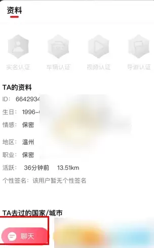 在约伴出行首页找到已添加或系统推荐、搜索到的好友,点击进入其个人资料页,若对方在线,可直接点击“聊天”按钮进入聊天界面,在输入框输入想说的话后点击发送即可;若对方不在线,也可发送消