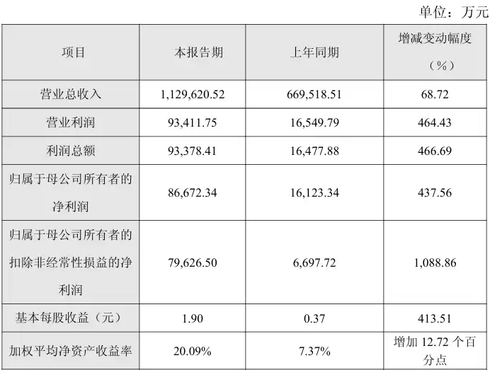 截至报告期末,公司总资产规模攀升至155.71亿元,较期初增长95.59%;归属于母公司所有者权益为54.54亿元,较期初增长126.13%;每股净资产增至11.68元,较期初增幅高达108.94%。