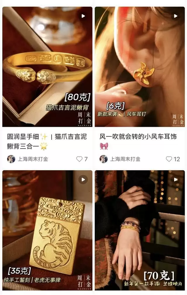 “现在金价太高,更多的顾客还是在乎实惠,以及款式比较新颖、流行。”周宝林说,消费者中各个年龄层都有,有年轻人因为结婚需求来置换、购买结婚金饰,也有人是把不戴的款式拿出来置换。”随着社交平台的发展,周宝林也尝试运营抖音、小红书等平台,粉丝虽然不算多,但也有不少顾客慕名而来,除了上海本地的老顾客外,也有常州、昆山的顾客赶过来打金。