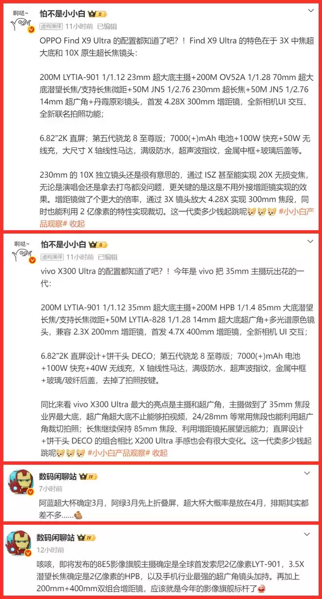 其中vivo X300 Ultra和OPPO Find X9 Ultra,这两款新机都是奔着“影像天花板”去的,但走的路子完全不一样。