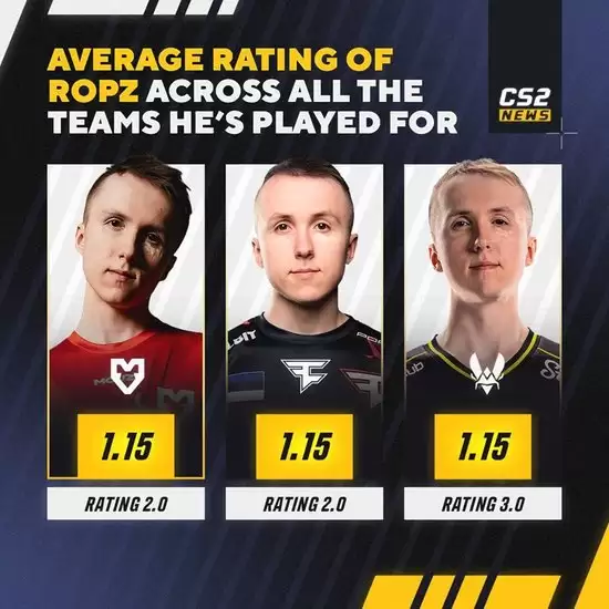 ropz三队平均Rating 1.15:稳定发挥成团队基石