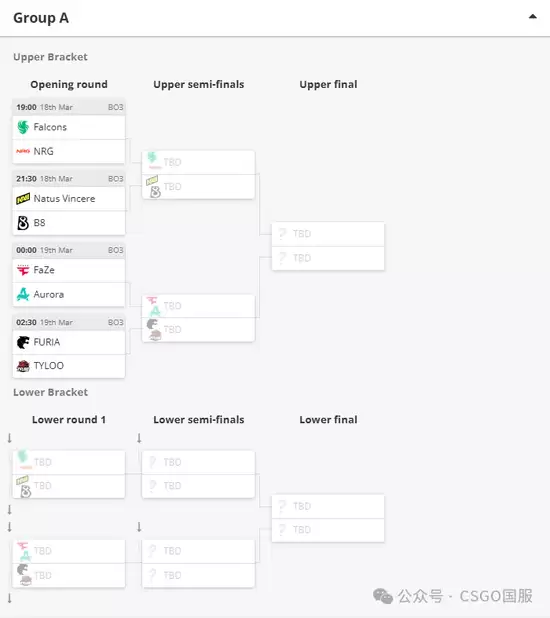 另外,在明年4月之前亚洲还有多项赛事即将举行。目前亚洲榜单中多支队伍的积分差距并不大,因此究竟谁能晋级科隆Major,悬念依然存在。3月18日,TYLOO将参加T1级别赛事BLAST鹿特丹站,下图为他们所在A组的对阵情况。