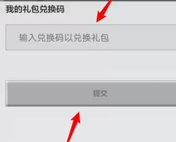 4、点击后,输入你的兑换码,再点击下方的提交按钮,操作方式参考下图。