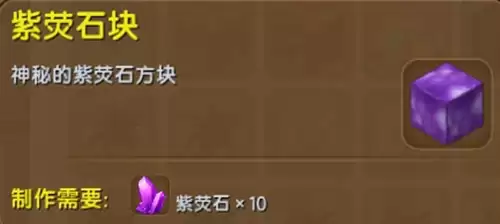 将获取的紫萤石直接放置在工作台中,即可合成为紫萤石块。