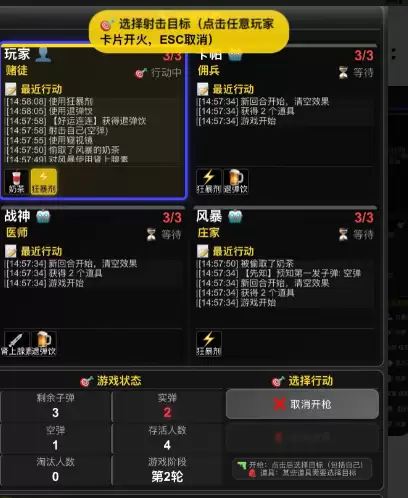 恶魔轮盘第二关双方各4血,每回合可选2个道具。首轮实1空1,可用道具查弹或控场;次轮实2空2,建议先自射试探;第三轮实3空2,优先攻敌并计算概率;后续根据弹量灵活选择,实弹占优时果