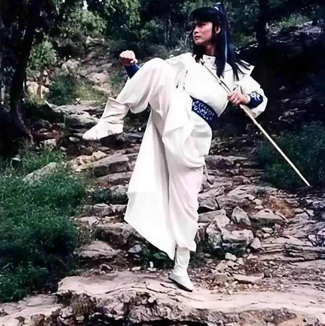 好在王文杰早年在香港做过武行,对吊威亚、拍武打戏门儿清,不会武功没关系,威亚一吊,再把威亚涂成黑漆避免穿帮,武侠高手的模样就出来了。