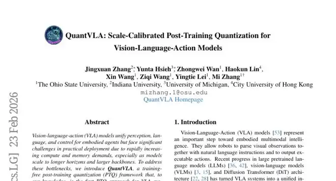 A:QuantVLA是一个专门为智能机器人设计的"减重"框架,能够在保持机器人智能水平的同时,将其内存占用减少约70%。它主要解决现代智能机器人因为功能复杂而导致的资源消耗过大问题,让机器人能够在普通硬件上高效运行,同时在某些任务上表现甚至比原版更好。