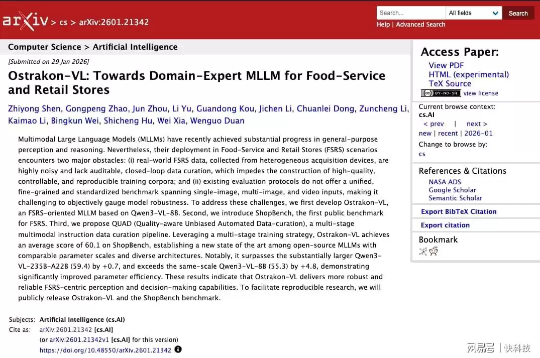 餐饮行业食品安全治理领域迎来了一项重磅AI利器!近日,淘宝闪购正式发布了专为餐饮服务与零售门店打造的风控治理垂直领域开源大模型——“白泽”(Ostrakon-VL),并宣布相关技术能力向全行业免费开放。