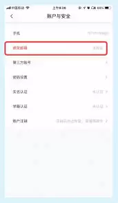 点击“账号与安全”选项后,会看到“邮箱”一栏。此时点击“邮箱”选项,进入邮箱绑定页面。