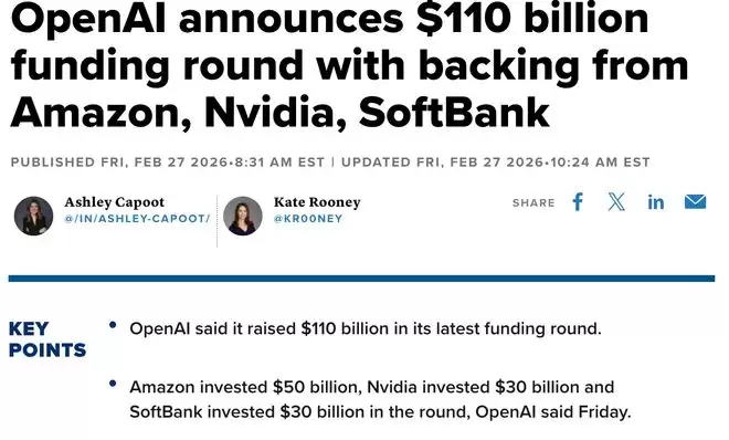 OpenAI完成1100亿美元融资,多家巨头参与投资布局