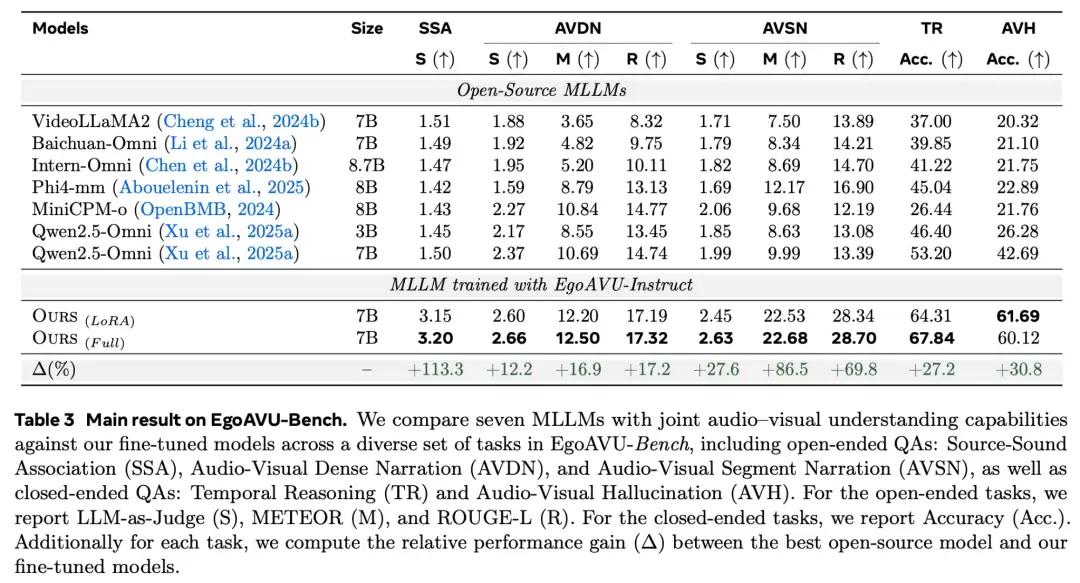 EgoAVU为这些领域提供了关键突破,让多模态大模型首次真正学会“听懂第一视角世界”。