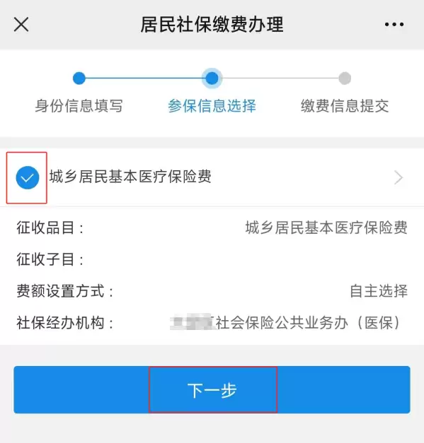 第四步:进入参保信息确认页面,选择你需要缴费的参保地和具体的参保类型。