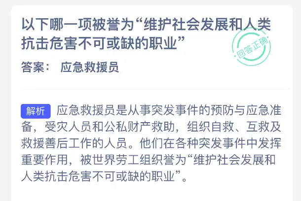 支付宝蚂蚁新村答案:维护社会发展的关键职业有哪些?