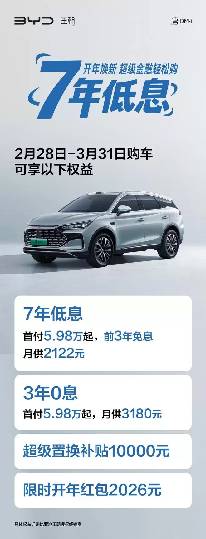 在2月28日至3月31日期间购车,即可享受以下金融权益: