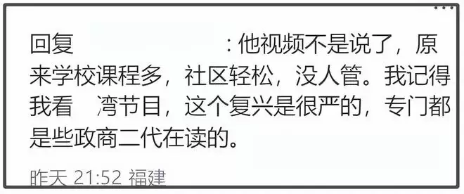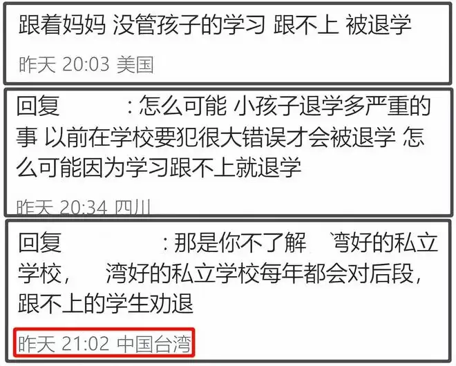 汪小菲称原来的国际学校是台湾省数一数二的好学校,这点从品冠儿子也在这里念书就能看出来,起码学校的家长圈层就不一般,评论区也有网友现身爆料,说学校管理也很严格。
