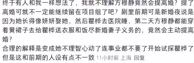 乍一看,还挺好看的。可后来,又是真假替身,又是闹离婚,方穆静主动选择跟瞿桦两头分居,瞿桦苦苦挽留,更加重了这种别扭感。
